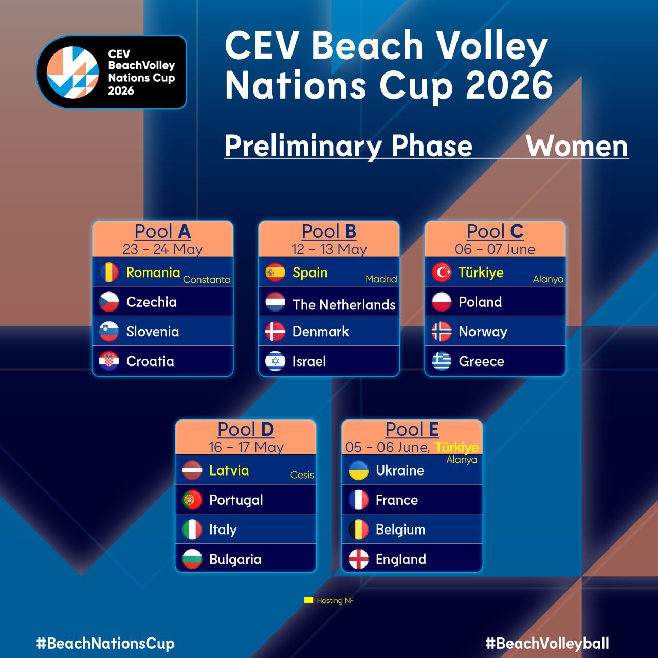 Türkiye, 5-7 Haziran 2026 tarihlerinde erkeklerde A ve E, kadınlarda ise C ve E grubu müsabakalarına Antalya'nın Alanya ilçesinde ev sahipliği yapacak.